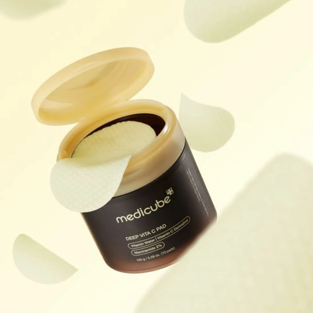 – Toner Pad Medicube Deep Vita C Pad chứa thành phần mai hắc biển kết hợp cùng dẫn xuất vitamin C giúp dưỡng ẩm và làm sáng màu da xỉn màu. Đó là một miếng đệm có tính axit nhẹ, có thể sử dụng hàng ngày vì không gây kích ứng da, giúp mờ thâm nám, sáng da, cải thiện sắc tô và chống lão hoá.
