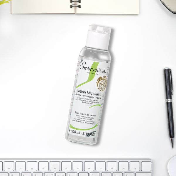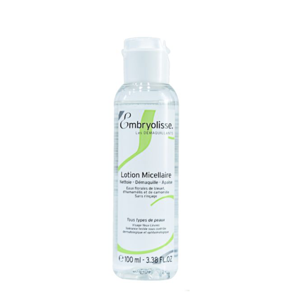 Embryolisse Micellar Lotion vô cùng dịu nhẹ, phù hợp cho cả làn da nhạy cảm nhất – nó chứa các hạt mixen (chất làm sạch nhẹ nhàng) trong dung dịch có trong hoa ngô, cúc la mã và nước cây phỉ, kết hợp với glycerin để làm mềm, làm dịu và làm đều màu da. Dung nạp cực tốt cho da và mắt, nhưng mang lại hiệu quả cao – giúp loại bỏ thoải mái mọi tạp chất và ô nhiễm hàng ngày, cùng với mọi dấu vết trang điểm. Hoàn toàn tinh khiết, làn da được làm dịu, mềm mại và săn chắc, làn da trông rạng rỡ hơ