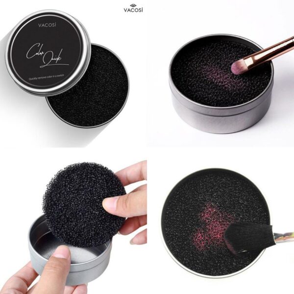 – Quét nhẹ cọ trang điểm trên bề mặt dụng cụ làm sạch cọ VACOSI Color Quick theo chiều chuyển động tròn để bột phấn trên đầu cọ được loại bỏ nhanh chóng.